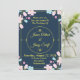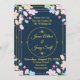 Elegant blue and gold, pink and blue flowers wedding invitation