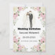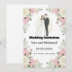 A beautiful wedding invitation design featuring a charming cartoon-style bride and groom surrounded by delicate white roses and soft greenery. The illustration has a romantic and elegant vibe with subtle cream tones, perfect for modern and classy wedding invitations.