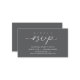 Introducing our Modern elegant minimalist Wedding "rsvp" Card – the perfect blend of sophistication and simplicity in charcoal grey theme. Designed for the contemporary couple, this RSVP card features clean, minimalist script, and a subtle touch of luxury to remind and notify guests to confirm their attendance via phone sms, text texting or email. The sleek design complements, adding a touch of class to your stationery suite. Ensure your special day is meticulously planned with our elegantly modern RSVP card – a timeless keepsake for you and your guests. Designed by TeeshaDerrick