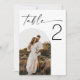 Create an elegant modern look for your reception with this minimalist wedding table number featuring your photo and a large easy to read number. Upload your couple photo and change the table number to match your seating plan. Clean black script “Table” paired with a modern numeral makes this design perfect for modern, classic, and romantic weddings. Ideal for wedding receptions, anniversaries, and other events. Display in a frame, tabletop stand, or acrylic holder for a polished, cohesive tablescape. Available as both a printed card and a digital download.