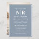 Announce your special day with timeless elegance using our Dusty Blue and White Elegant Wedding Monogram Bride And Groom Initials Invitation. Crafted to perfection, this invitation sets the tone for a luxurious spring or summer wedding, but it's equally perfect for a fall or summer affair.