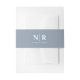 Elevate your wedding invitations with our Dusty Blue and White Elegant Wedding Monogram Personalised Invitation Belly Band. Crafted with a modern touch, these belly bands feature a serene dusty blue backdrop paired with crisp white accents, creating a harmonious and sophisticated colour palette. The minimalist chic design showcases your custom wedding monogram at the centre, adding a personalised touch that embodies elegance and simplicity.