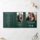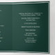 Crafted with meticulous attention to detail, this tri-fold wedding program exudes elegance and charm. The rich emerald green hue, paired with pristine white accents, creates a visually stunning backdrop that sets the tone for your ceremony.