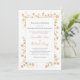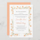 This design features a wedding invitation template with an elegant, classic, classy modern minimal style, with a simple elegant calligraphy script, and a peach floral boho greenery style, with traditional wording,