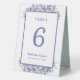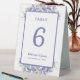 A chic template for any number this elegant watercolor floral Wedding Table Number design features a classic botanical garden design with stylish shades of periwinkle blue flowers with soft lush greenery on a crisp white background. Personalise wedding table design with your names, wedding date and table number in trendy lettering and script. The back of the table sign is a duplicate of the front. Easily customise and order one for every table with the individual table numbers.