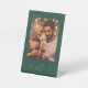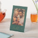 These green and gold table numbers feature a photo of the happy couple in the centre. To edit the text and change the photo click on the personalise button.