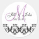 Elegant Wedding Purple Monogram Save the Date Classic Round Sticker