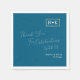 Classy ocean-blue wedding napkins, personalised with Mr. and Mrs. initials and names, with a small heart of love, and special date... and with special words 'Thank You For Celebrating With Us'.