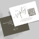 A simple wedding RSVP response card with simple, wedding rsvp, with a QR code website, an elegant calligraphy script, simple stylish, modern enclosure, budget-friendly, reply response, online, ab elegant minimalist, minimal