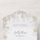 Set the tone for your special day with this all-in-one wedding invitation, featuring watercolor greenery and botanical leaves for a modern bohemian chic aesthetic. Designed in dark sage green, gold, and white, this trendy rustic country barn autumn invitation blends elegant calligraphy script with eucalyptus greenery leaves, perfect for a mid-summer celebration. The classic whimsical minimalist leaves add a touch of timeless charm, making it an effortlessly stylish choice for your wedding.