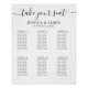 Introducing our customisable elegant wedding seating chart, a timeless and sophisticated addition to your special day. This exquisite product is designed to help you and your guests find their seats with ease, ensuring a seamless and organised reception. Crafted with meticulous attention to detail, this seating chart features a refined and elegant layout that complements any wedding theme. With the capacity to accommodate 6 tables, it provides a clear and concise overview of the seating arrangements, making it effortless for guests to locate their assigned tables.