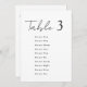 Minimalist Elegant Wedding Seating Chart featuring graceful script table numbers in a modern black and white design. Perfect for stylish weddings, this customizable table list card allows you to personalize the numbers and names of up to 10 guests per table. Elegant and timeless, it adds a sophisticated touch to your wedding décor. Printed on both sides for a refined and complete look from every angle.
