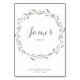 Elegant wedding place cards table cards with grey floral wreath and custom grey text printed on white background