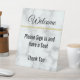 Welcome your visitors with this faux white marble welcome sign. The display text can be edited to show your desired text. Display text reads: Welcome Please sign in and have a seat Thank You