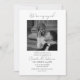 Elegant 'we're engaged' engagement party invitation with photo. Simply customise this simple celebration invite template with your party date, time, location, names and favourite couple photo from your proposal and get printed/ or send digitally! The front of the party invitation includes black handwritten script font with a minimal and elegant design. The back of the invitation can be further personalised by adding another favourite couple photo or can remain blank.