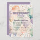 This elegant and whimsical Birthday invitation features a soft watercolor background adorned with an array of translucent balloons in gentle hues of peach, lavender, and teal. The design creates a dreamy and festive atmosphere, perfect for any celebration. The text is fully customisable, allowing you to personalise every detail, from the guest of honour’s name to the event specifics like date, time, and location. The mix of script and print fonts adds a sophisticated charm to the invitation, making it a delightful choice for those looking to combine the artistic beauty of watercolor with the joyful essence of balloons. Ideal for anyone seeking a unique and customisable invitation for their special occasion.