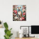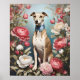 Elegant Whippet Pink Peony Flowers Blue Background Poster