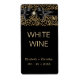 This wedding wine label features a golden swirl pattern and a satin ribbon and bow with a diamond and pearl brooch graphic. Easily customised. Works well with the small favour size 750 ml slim wine bottles.