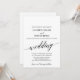 This elegant white and black calligraphy wedding invitation card is perfect for a simple wedding. The neutral design features a minimalist card decorated with romantic and whimsical typography.
