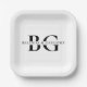Elegant White and Black Monogram Initials Wedding Paper Plate