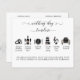 Elegant modern white and black wedding timeline program with beautiful timeline icon images in black, white, grey and taupe hues and elegant modern handwritten calligraphy details. Ability to select customise and move around timeline images and text to suit your own wedding timeline, simply drag and move. Personalise dinner image with your own initials. Back in white "background colour" (which can be changed to any other colour you like by selecting customise further") with the ability to customise back information to add wedding program and wedding party names or any other information you like.
