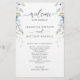 Welcome your guests to your ceremony with this elegant wedding program with modern hand written calligraphy and exquisite watercolor greenery and floral details. Ability to make text changes and adjustments by selecting "customize further". Front with wedding ceremony details, back with wedding party names and thank you message for your guests. Greenery and floral in a beautiful blend of white, blue and green hues. Elegant and modern feel. Part of our "Elegant Bliss" collection with a variety of coordinating invitations, insert cards, rsvp cards, mailing accessories, save the dates, thank you cards and event signs and products.