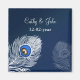 Elegant white and blue peacock customised save the date magnet favours. Matching products also available