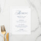 These simple and elegant wedding menus feature a mix of classic dusty blue text and classic, luxe calligraphy on a white background.