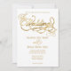 Elegant White and Faux Gold Calligraphy Wedding Invitation