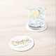 A formal, elegant white wedding paper coaster with faux gold calligraphy script.