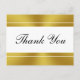 Black script says 'Thank You' on gold look postcard. Faux gold background is an artistic rendering (no foil on card).