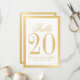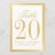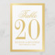 features title "Table" in gold elegant script font style and table number, wedding details in gold serif font style with gold border on white background.