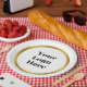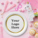 A display image is in the centre. You can replace the image with your logo. The plate has a white and faux (not foil) gold border.