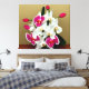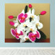 This canvas print features a bouquet of white and pink orchids with a golden background. The white and pink orchids highlighted against the gold backdrop, creating an elegant yet eye-catching piece. Pure white orchid in the petals bring out their delicate beauty while adding a hint of luxury to the overall composition of this bouquet. The added vibrant pink added to create an inviting atmosphere that is perfect for any home décor setting. This digital artwork will make a beautiful addition to your living space and bring life to any room in your home. .