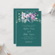 At the top of the invitation, you'll find a stunning arrangement of white and purple flowers, beautifully complemented with various shades of greenery, creating a lush and romantic feel. This floral arrangement represents the beauty and harmony of your relationship, making it a perfect symbol of your love story.