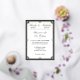This is a 5' x 7" wedding invitation, shown in elegant white with gold foil accents. The invitation has an art deco flavour. This is genuine Italian foil, available in gold, silver, and rose gold. The foil accents include the bride and groom's name, a whimsical heart and horizontal line, a tulip flower design, and a foil outline on the front. The reverse includes an 'Our Special day' motif, with details about the wedding.
