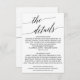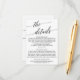 This elegant white and black calligraphy wedding details card is perfect for a simple wedding. The neutral design features a minimalist card decorated with romantic and whimsical typography. The backing includes a space to write a thank you message.