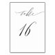 Elegant White Black Modern Script No 16 Wedding Table Number