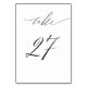 Elegant White Black Modern Script No 27 Wedding Table Number
