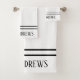 Elegant White Black Monogrammed Name Bath Towel Set