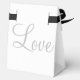 Elegant white black Wedding Favour Boxes with Black Ribbon Bow. Thank You Favour Boxes for wedding reception or other special occasions. Personalise with the Bride and Groom's First Names and Wedding Date. Love is written on back in silver script. Original Design © TamiraZDesigns.