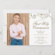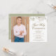 An elegant first holy communion invitation featuring your special photo and delicate white blossom framing your first holy communion details in elegant gold typography. Designed by Thisisnotme©