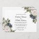 This Elegant Romantic Floral Invitation features watercolor lush bouquets of pale pink roses and navy blue flowers on the white background . The reverse side of this invitation is white with floral bouquets. Enjoy it.