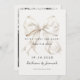 "We're tying the knot" wedding save the date invitation with an elegant white bow design and handwritten script font. Add your photo to the back for a personal touch.