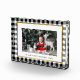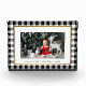 Elegant White Buffalo Plaid Personalised Holiday Photo Block