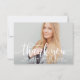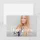 Express your gratitude with this gorgeous graduation thank you card. Flowing white calligraphy overlays your full-bleed senior portrait with your name, school, and class year in crisp white type below. Customise everything for a beautiful card that showcases your favourite portrait.