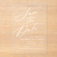 Set the tone for your big day with our Elegant White Calligraphy Wedding Save the Date. This sophisticated design features "Save the Date" in a refined white calligraphy script, beautifully contrasted against a frosted or transparent acrylic background. Perfect for any wedding theme, this timeless save-the-date card can be personalised with your names, wedding date, location, and wedding website. Combining elegance with modern charm, it’s the ideal way to announce your special day in style.