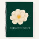 This elegant spiral notebook features a delicate white camellia flower set against a deep green background, creating a calm and timeless botanical aesthetic.