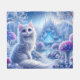 Elegant White Cat in a Snowy Magical Realm Fleece Blanket