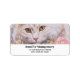 Address labels with a lovely illustration. A long haired white cat looking regal and elegant. Surrounded by pink flowers, gold and diamond jewellery.